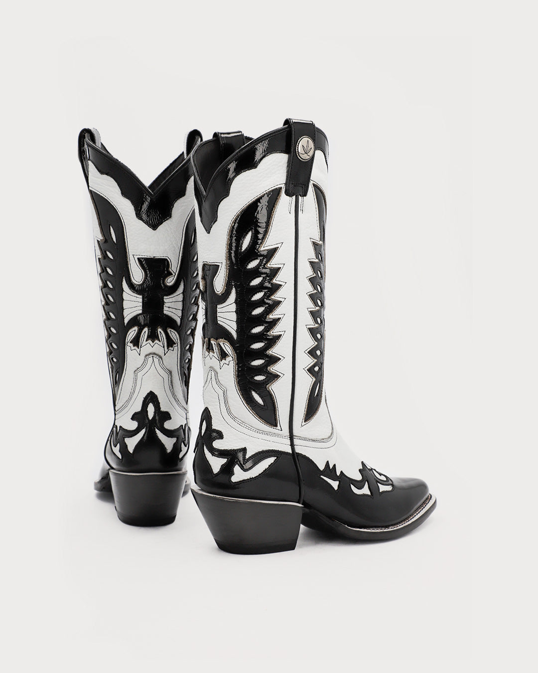 The combination of classic white leather with glossy patent black leather creates a bold contrast. Each pair is fully crafted in leather using the highest construction standards and passes through artisan hands at Atelier Mezcalero, where tradition, design, and precision live in every stitch.